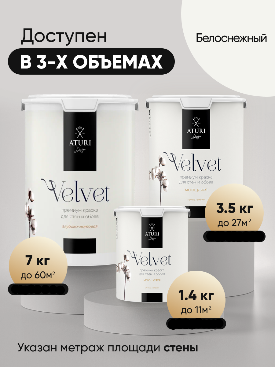 Краска интерьерная для стен и обоев Aturi Design Velvet Белоснежная 3,5 кг. Моющаяся, матовая, белая, без запаха