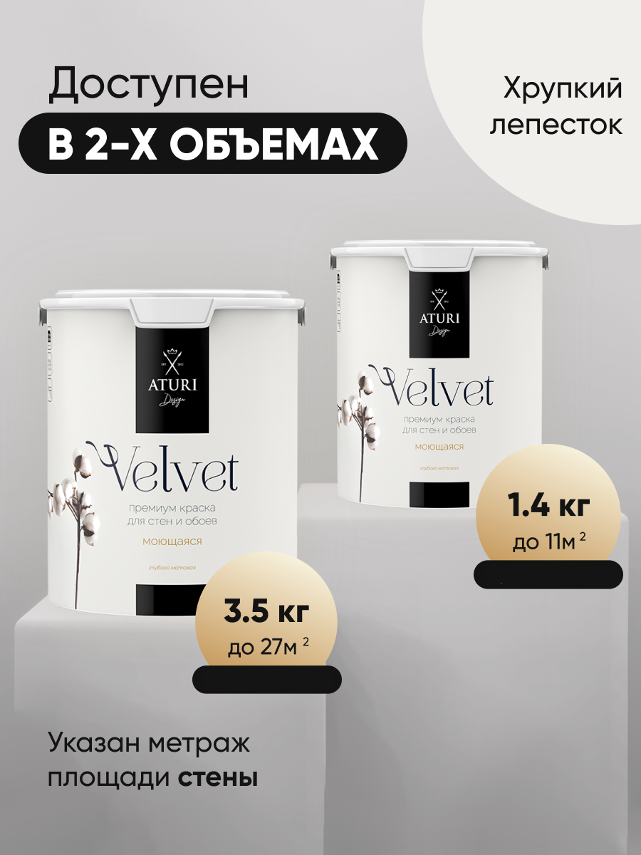 Краска интерьерная для стен и обоев Aturi Design Velvet 1,4 кг цвет: Белоснежный. Меловая, матовая, белая, без запаха