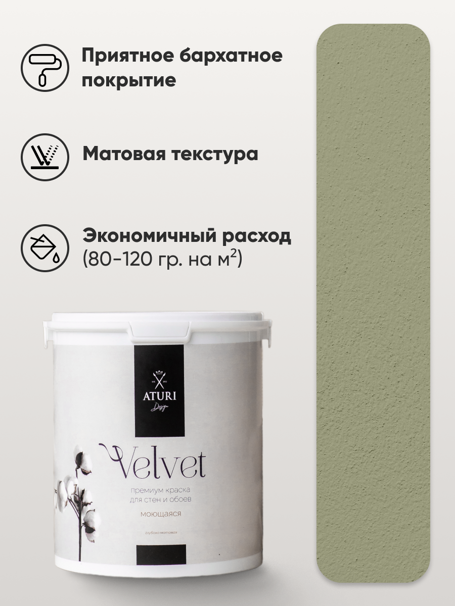 Краска Aturi Design Velvet интерьерная, для стен, моющаяся; Цвет: Северная полынь, 3 кг