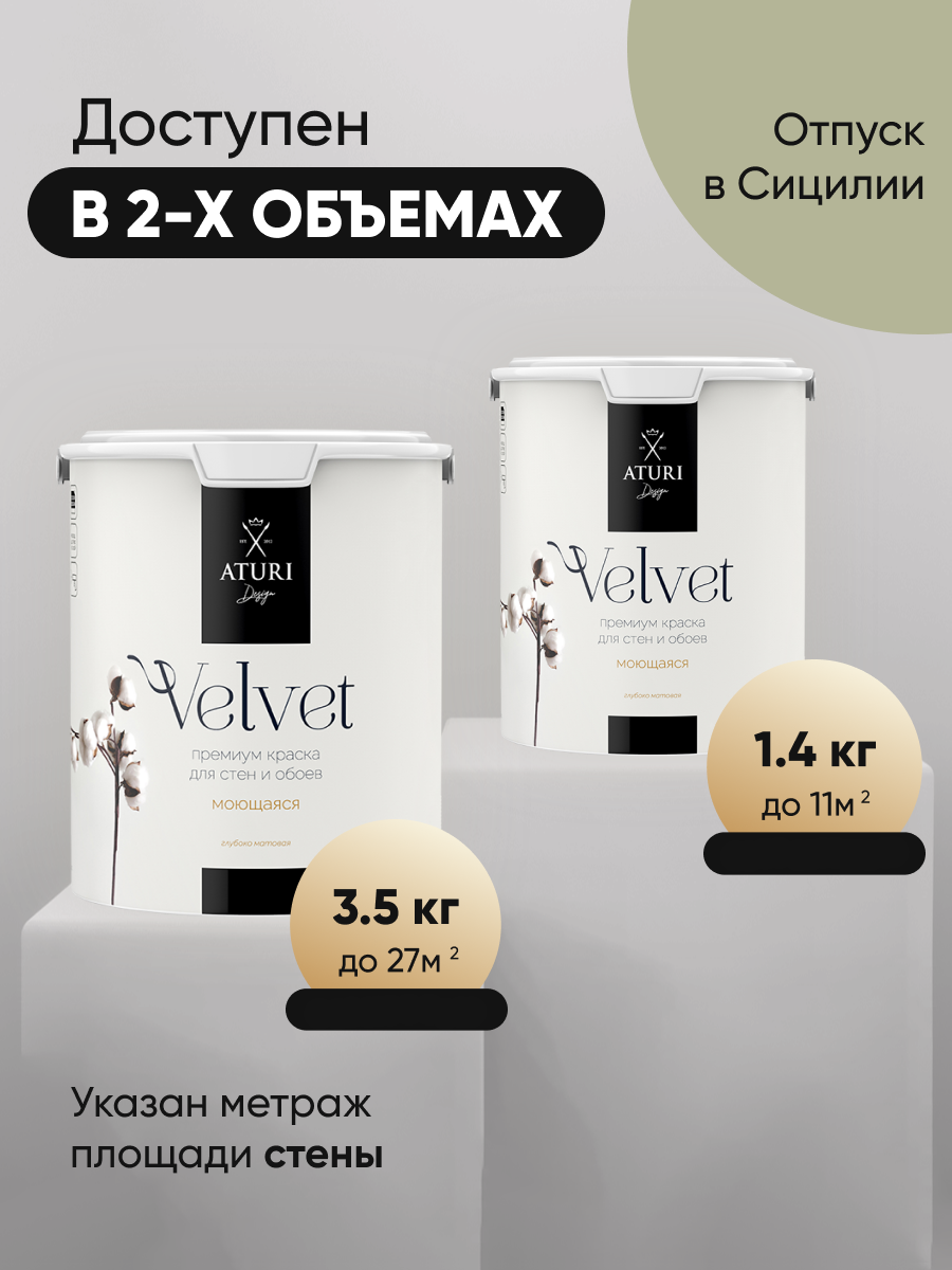 Краска Aturi Design Velvet интерьерная, для стен, моющаяся; Цвет: Отпуск в Сицилии, 1,4 кг