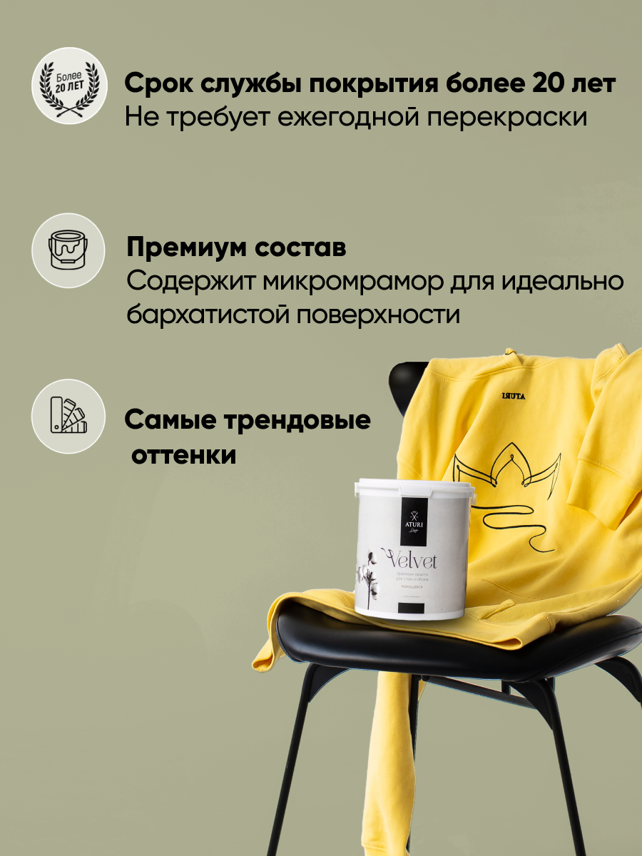 Краска Aturi Design Velvet интерьерная, для стен, моющаяся; Цвет: Шелест трав, 3,5 кг