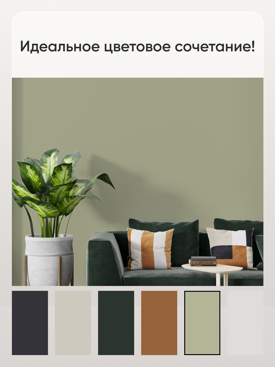 Краска Aturi Design Velvet интерьерная, для стен, моющаяся, цветная; Цвет: Тропический хаки, 1,4 кг