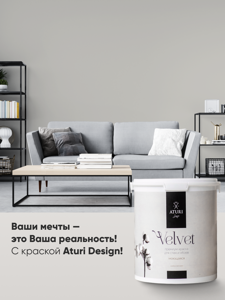Краска интерьерная для стен и обоев Aturi Design Velvet Нежный пепел 1,4 кг, моющаяся, цветная матовая, серая