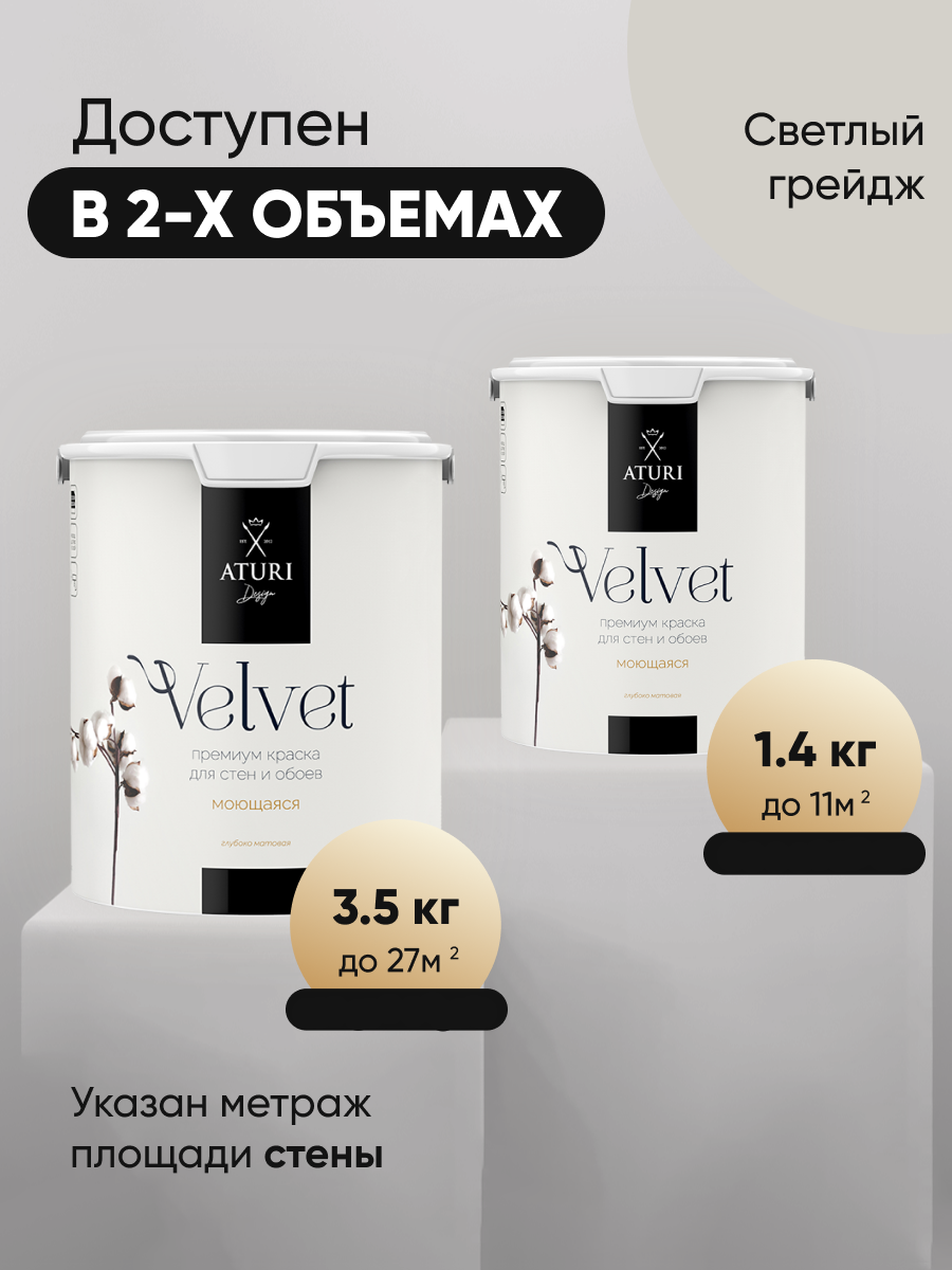 Краска интерьерная для стен и обоев 1,4 кг Aturi Design Velvet, Безмятежность, моющаяся, цветная матовая, серая