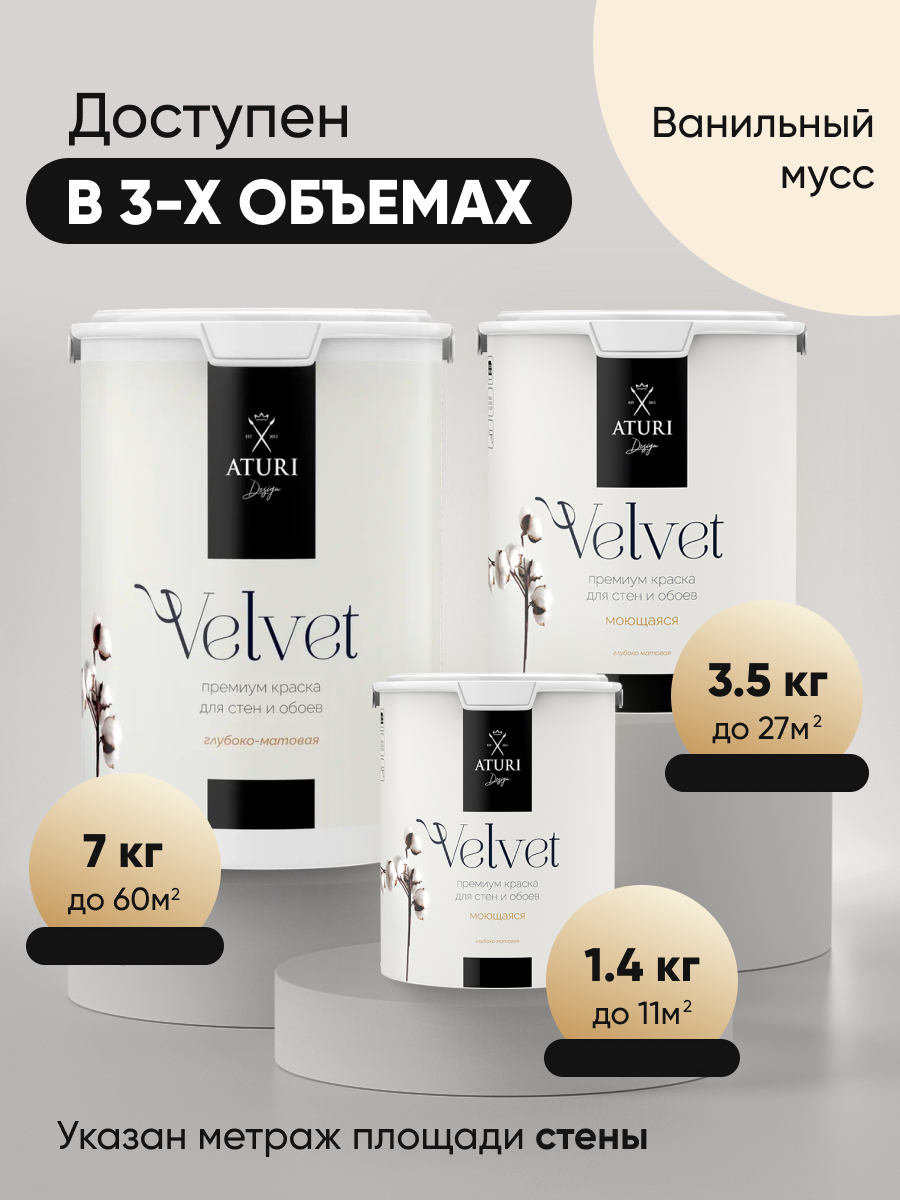 Краска Aturi Design Velvet интерьерная, для стен, моющаяся; Цвет: Ванильный мусс, 1,4 кг
