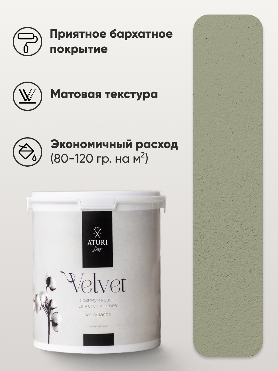 Краска Aturi Design Velvet интерьерная, для стен, моющаяся; Цвет: Северная полынь, 1,2 кг