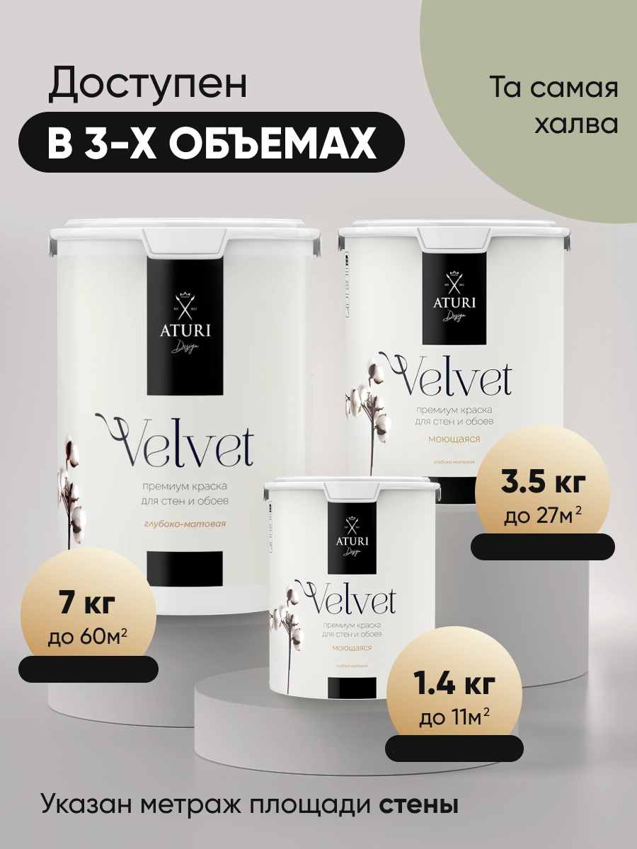 Краска Aturi Design Velvet интерьерная, для стен, моющаяся; Цвет: Шелест трав, 3,5 кг