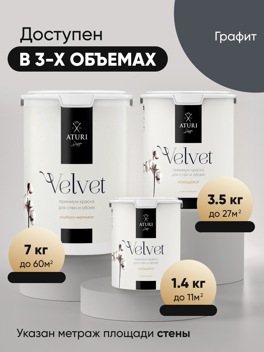 СохранитьКраска Aturi Design Velvet 1,4 кг, цвет: Графит, интерьерная, без запаха, моющаяся, матовая интересное: