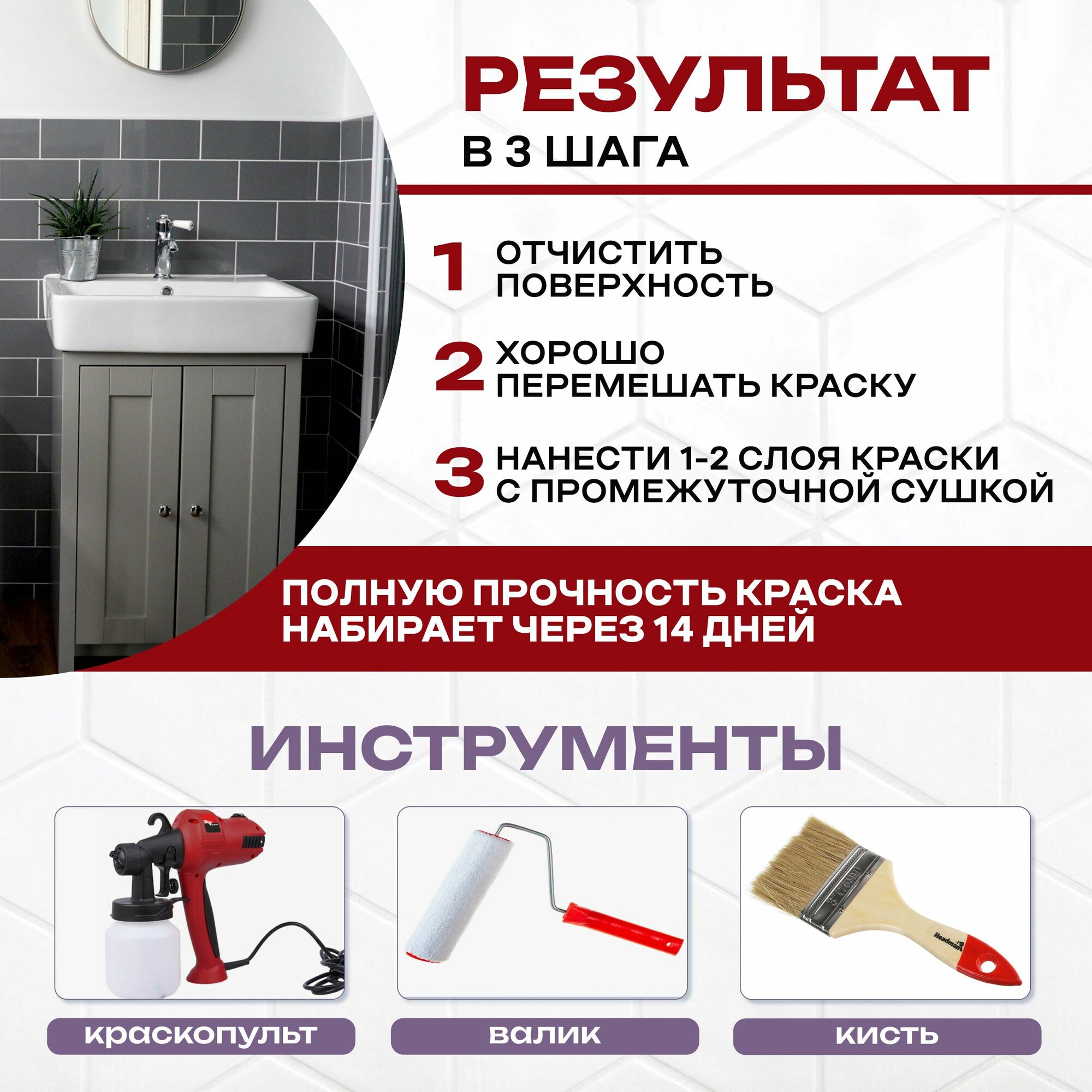 Краска водоэмульсионная ВТВ для ванной комнаты, кафеля и керамической плитки, стен и потолков, моющаяся 1кг Белая