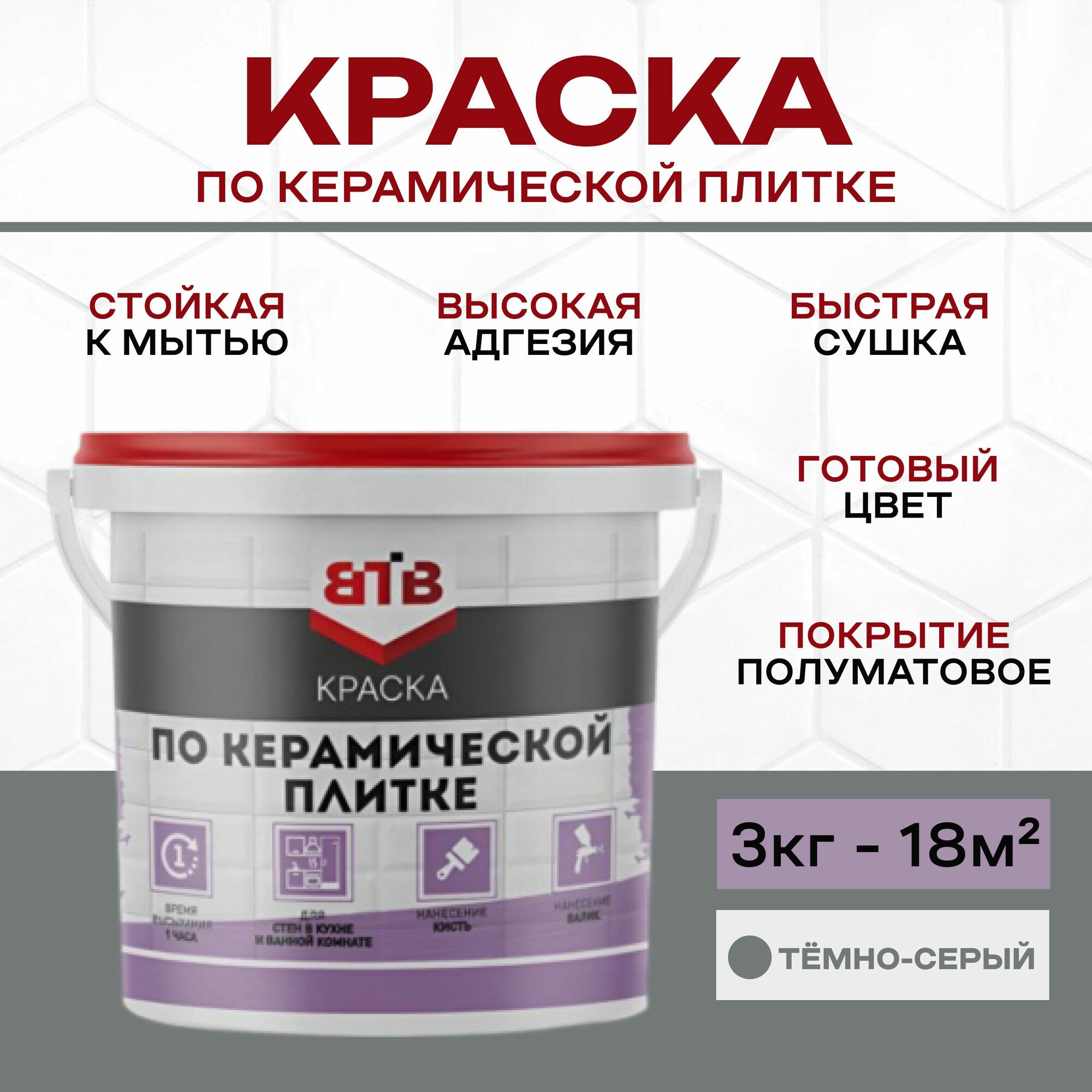 Купить Краска по керамической плитке ВТВ 3 кг Темно - Серый