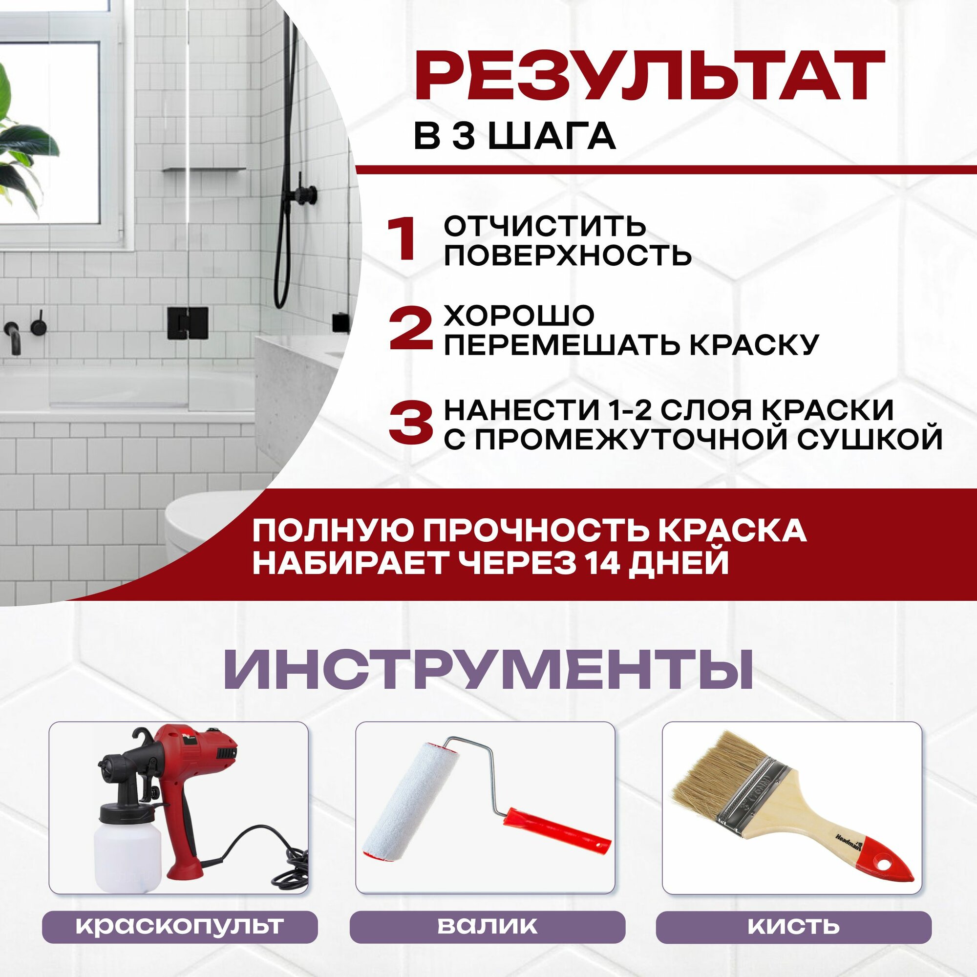 Краска водоэмульсионная ВТВ для ванной комнаты, кафеля и керамической плитки, стен и потолков, моющаяся 1кг Белая