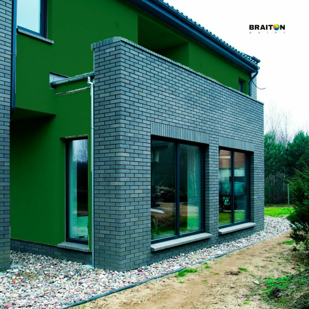 Краска ВД фасадная BRAITON Премиум Сверхпрочная 12 кг. Цвет Изумрудно-зелёный RAL 6001