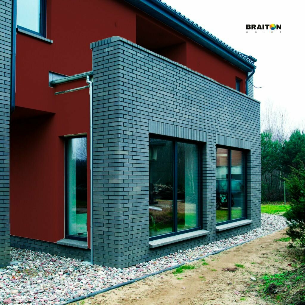 Краска ВД фасадная BRAITON Премиум Сверхпрочная 4 кг. Цвет Красно-коричневый RAL 8012 для наружных и внутренних работ для дерева по бетону, для минеральных поверхностей и штукатурке,