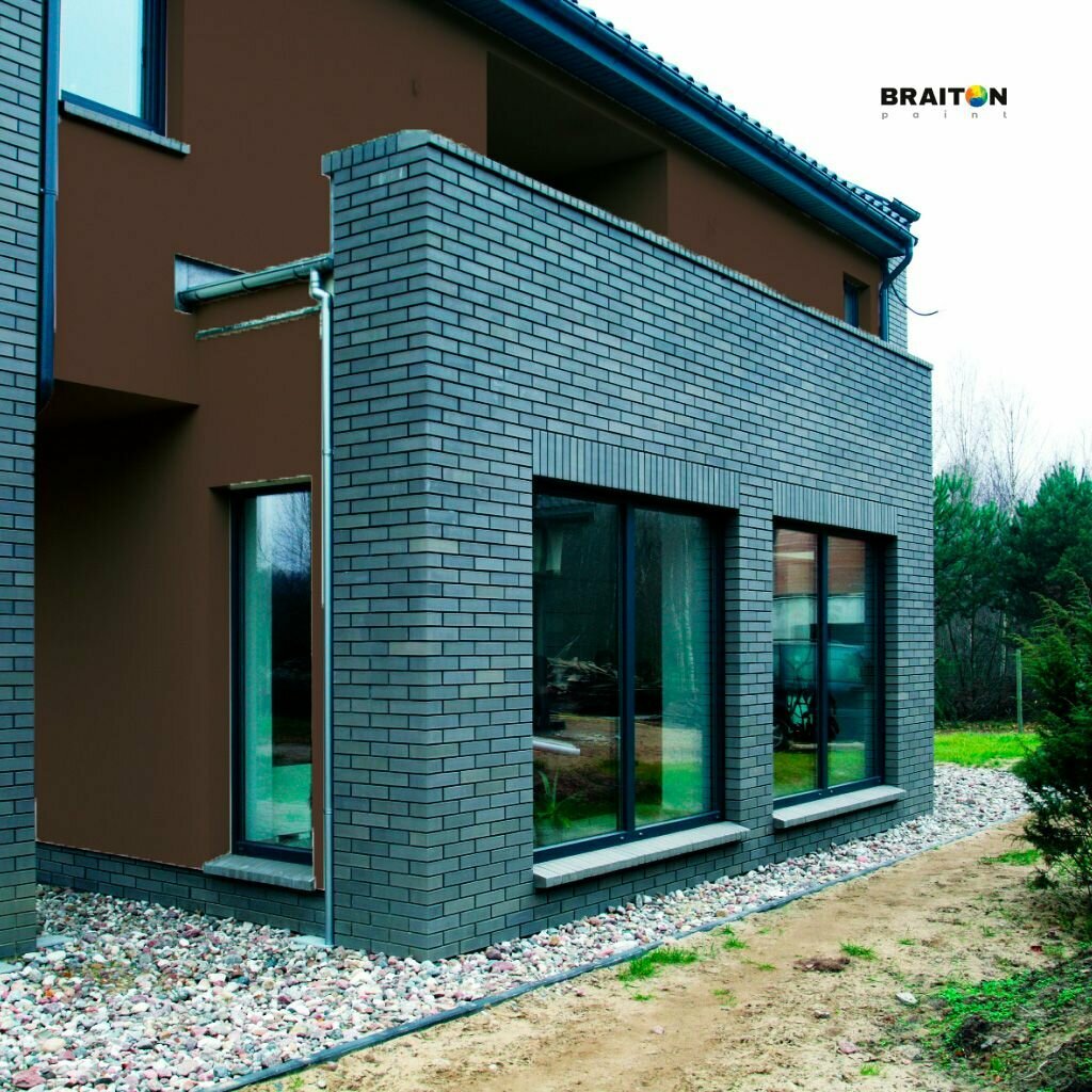 Краска ВД фасадная BRAITON Премиум Сверхпрочная 2,5 кг. Цвет Серо-коричневый RAL 8019 для наружных и внутренних работ для дерева по бетону, для минеральных поверхностей и штукатурке,
