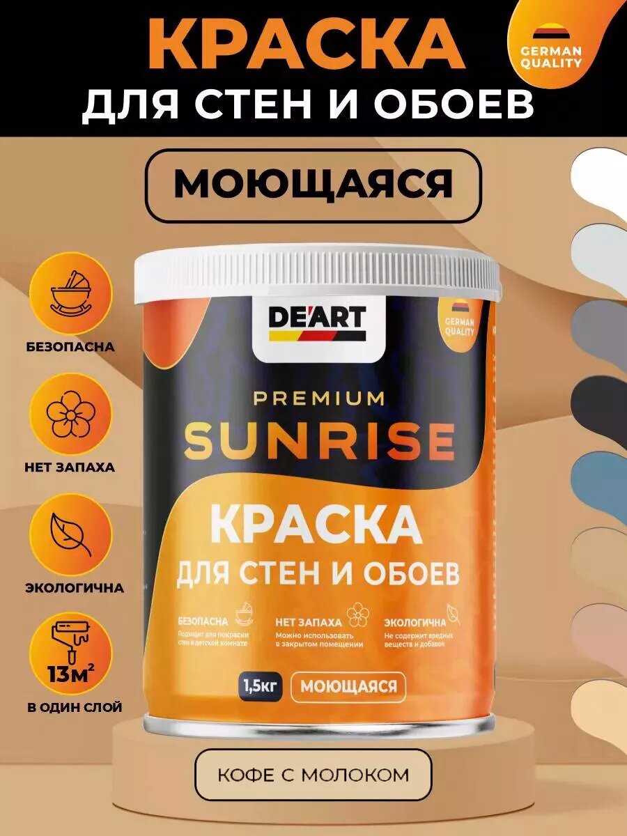 СохранитьВодоэмульсионная краска для стен и обоев моющаяся, кофе с молоком 1.5кг интересное: