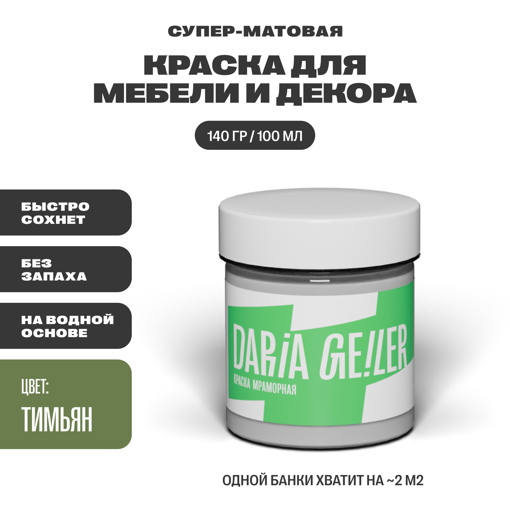 Мраморная краска для мебели Дарья Гейлер "Тимьян" 100 мл, мебельная краска по дереву для стен Daria Geiler интересное: