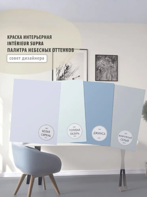 INTERIEUR SUPRA водоэмульсионная экстраматовая краска для стен и потолков, моющаяся, 0.9 л цвет Голубой 7347