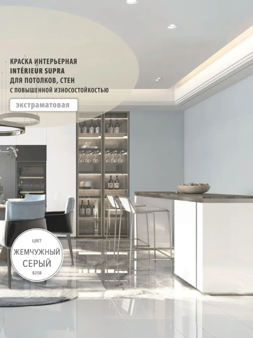 INTERIEUR SUPRA водоэмульсионная экстраматовая краска для стен и потолков, моющаяся, 0.9 л цвет Светло серый 8475