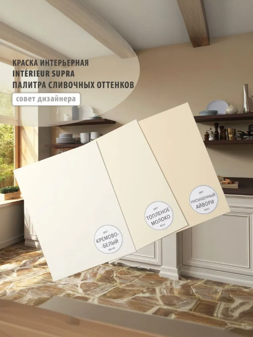 INTERIEUR SUPRA водоэмульсионная экстраматовая краска для стен и потолков, моющаяся, 0.9 л цвет Слоновая кость 8523