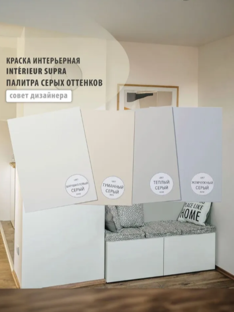 INTERIEUR SUPRA водоэмульсионная экстраматовая краска для стен и потолков, моющаяся, 0.9 л цвет Светло серый 8475