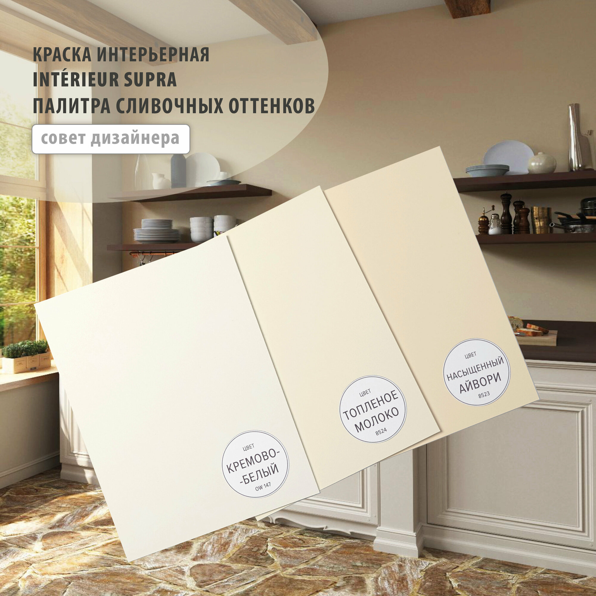 INTERIEUR SUPRA водоэмульсионная экстраматовая краска для стен и потолков, моющаяся, 0.9 л цвет Слоновая кость 8523