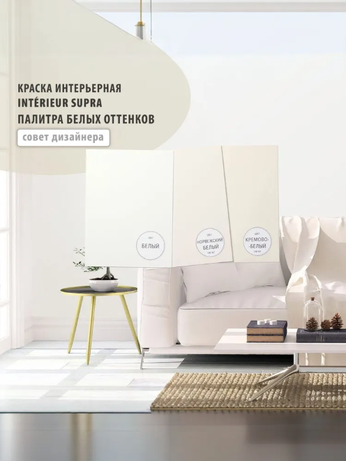 INTERIEUR SUPRA водоэмульсионная экстраматовая краска для стен и потолков, моющаяся, 0.9 л цвет Слоновая кость 8523
