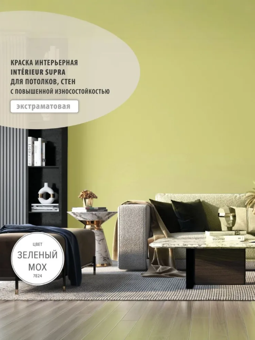 СохранитьINTERIEUR SUPRA водоэмульсионная экстраматовая краска для стен и потолков, моющаяся, 0.9 л цвет Оливковый 7824 интересное: