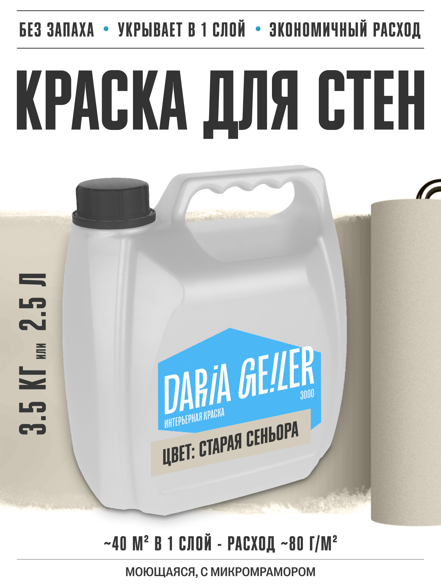 Купить DARIA GEILER краска для стен интерьерная Дарья Гейлер "Старая сеньора" 2,5 литра, водная, матовое покрытие, черная