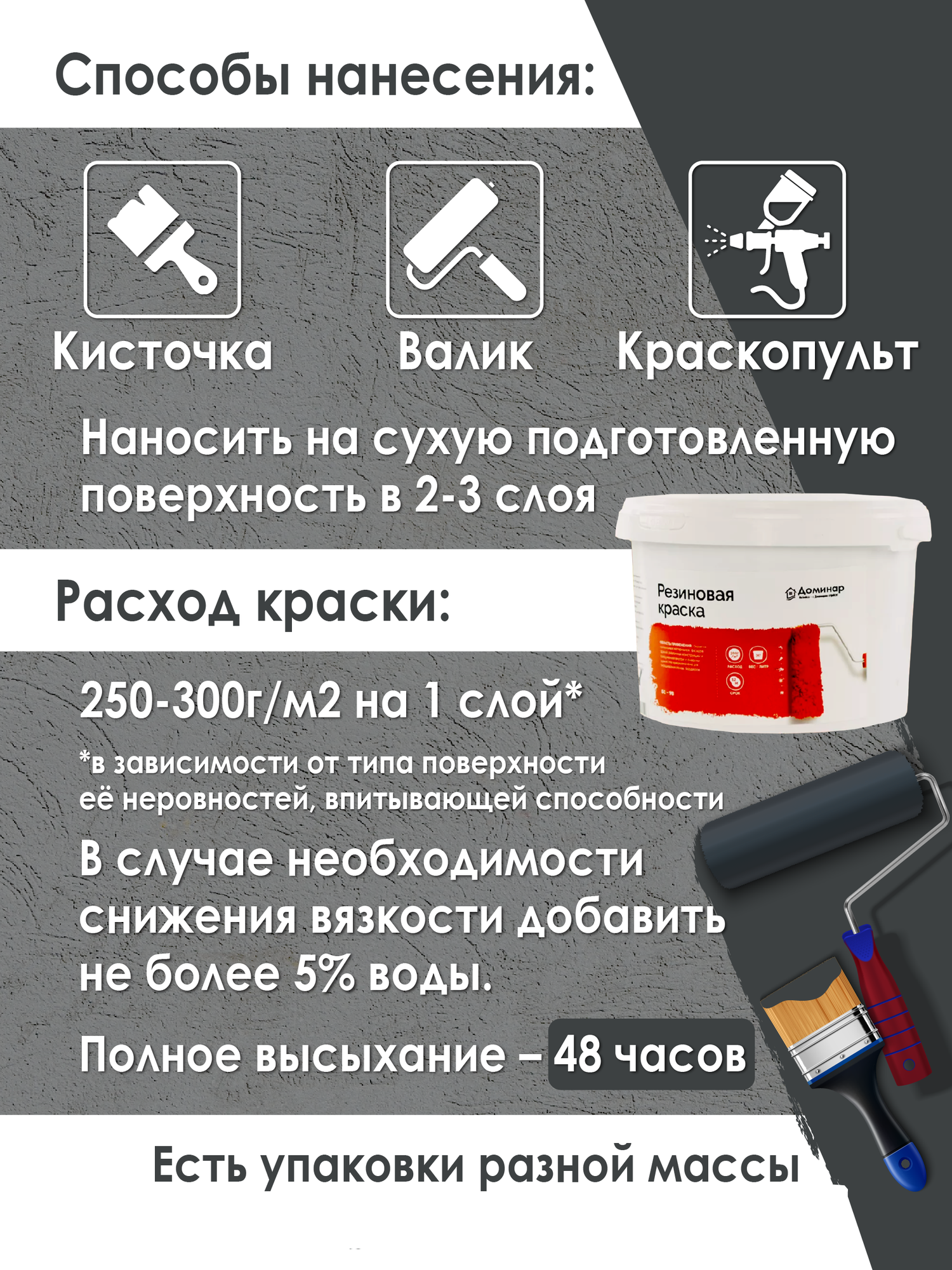 Резиновая краска для наружных, внутренних работ влагостойкая матовая БС 98 Доминар, графитовая, 10 кг интересное:
