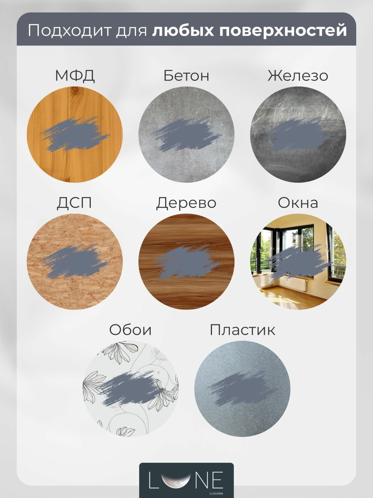 Краска для мебели, дерева и декора акриловая быстросохнущая без запаха LUNE COLOREE, цвет Метеорит (серая), 0,5 кг