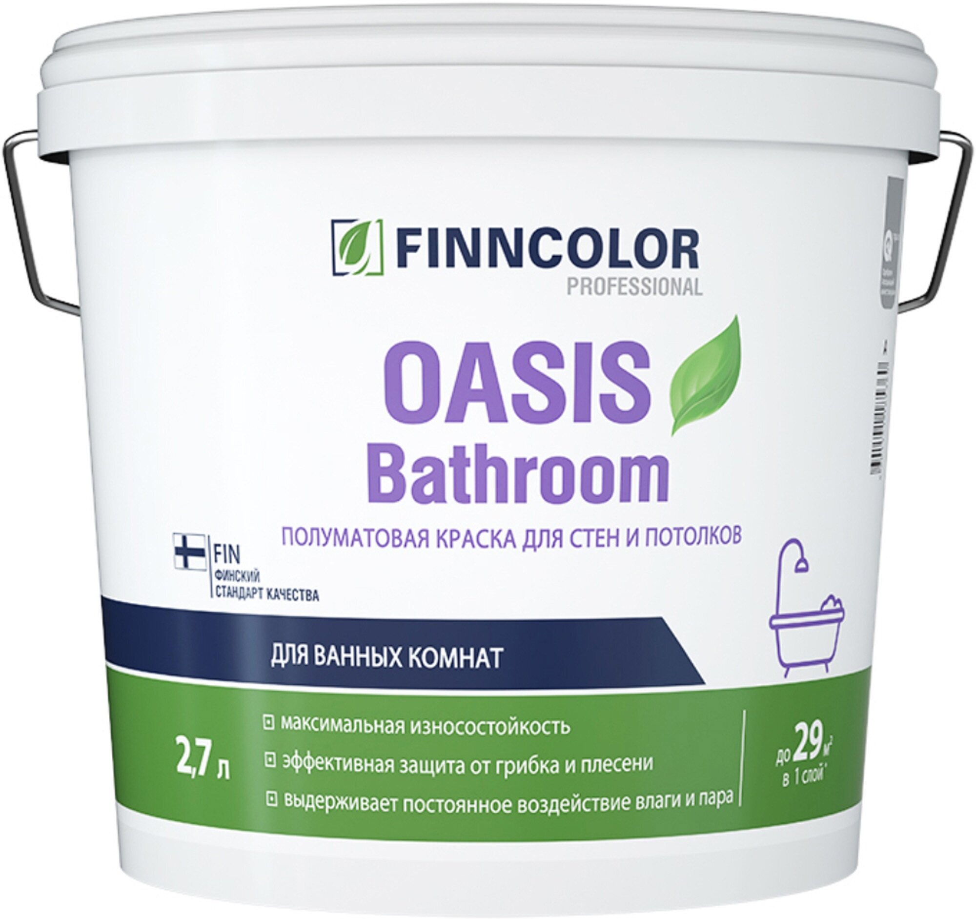 Купить Краска Finncolor OASIS BATHROOM влагостойкая моющаяся база А (белая) 2,7л