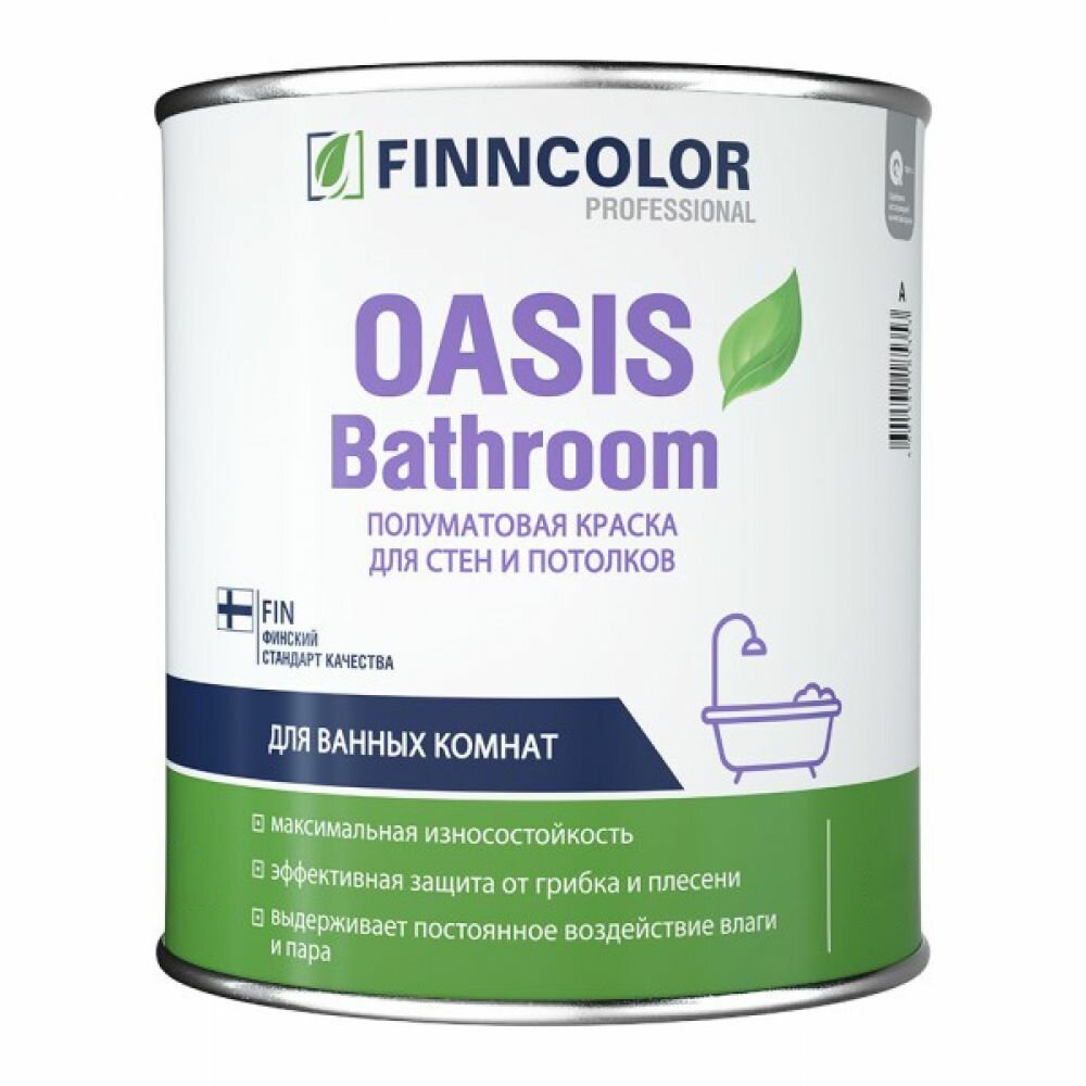 FINNCOLOR OASIS BATHROOM краска влагостойкая для влажных помещений полуматовая, база C (0,9л)