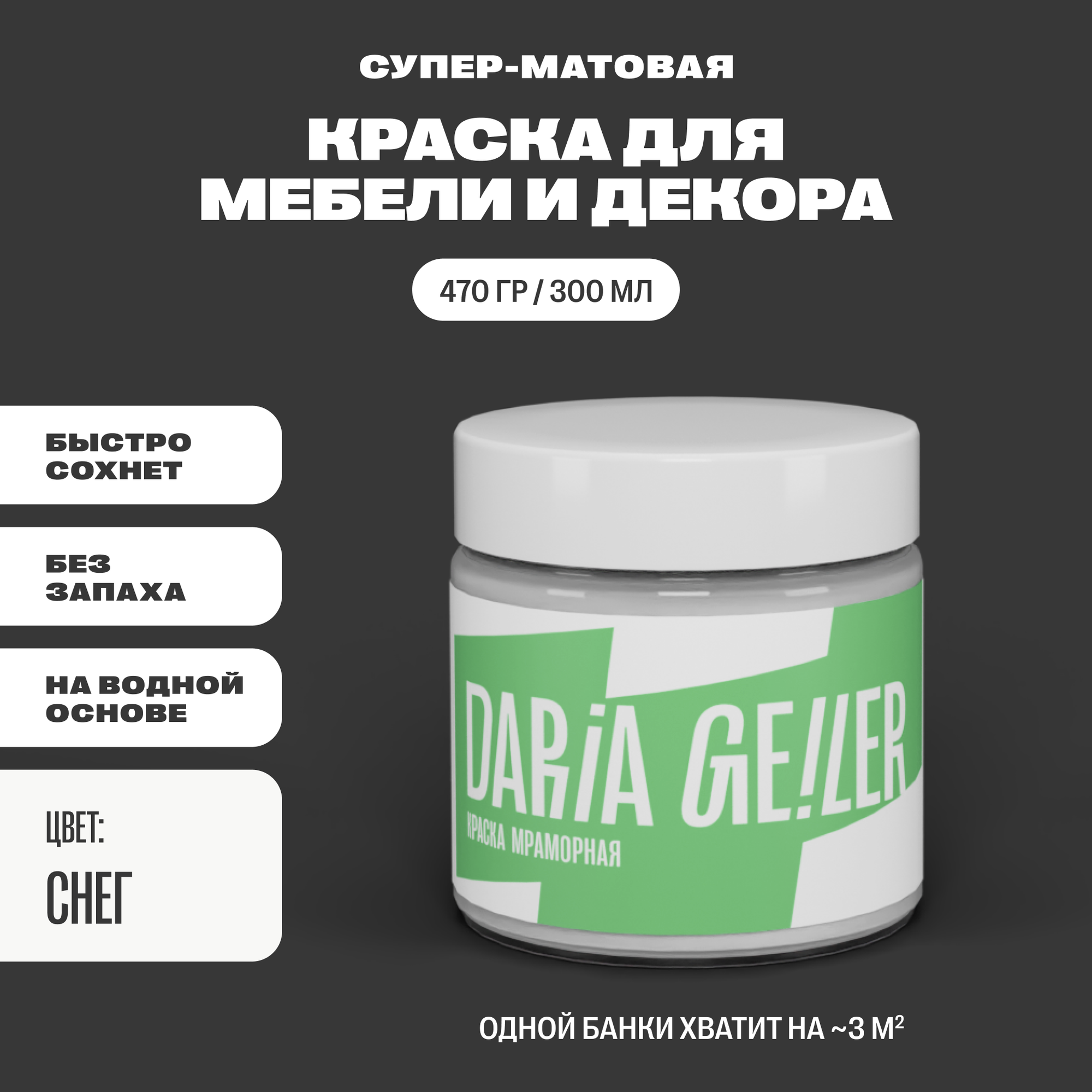 Мраморная краска для мебели Дарья Гейлер "Снег" 300 мл, мебельная краска по дереву для стен Daria Geiler интересное: