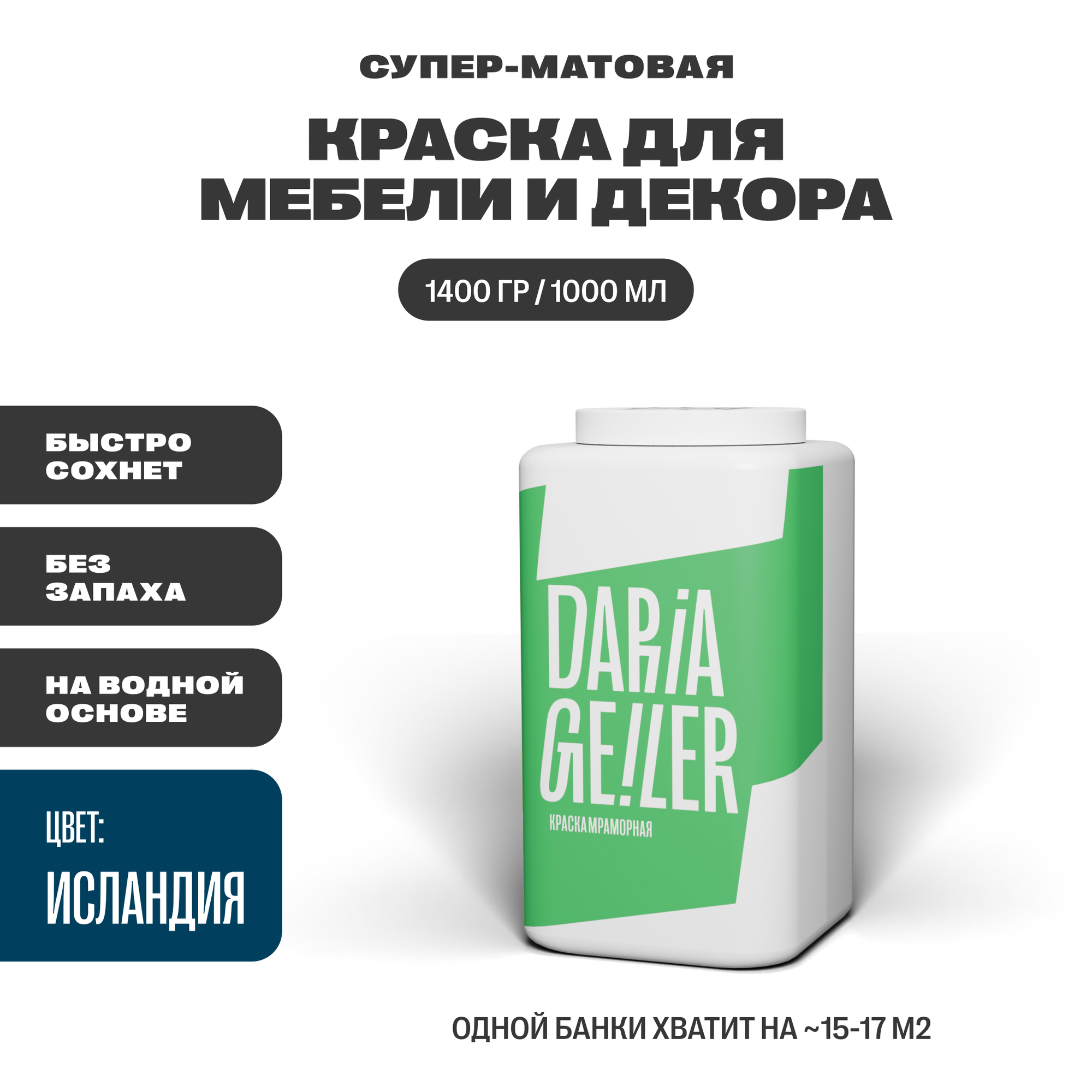 Мраморная краска для мебели Дарья Гейлер "Исландия" 1000 мл, мебельная краска по дереву для стен Daria Geiler интересное: