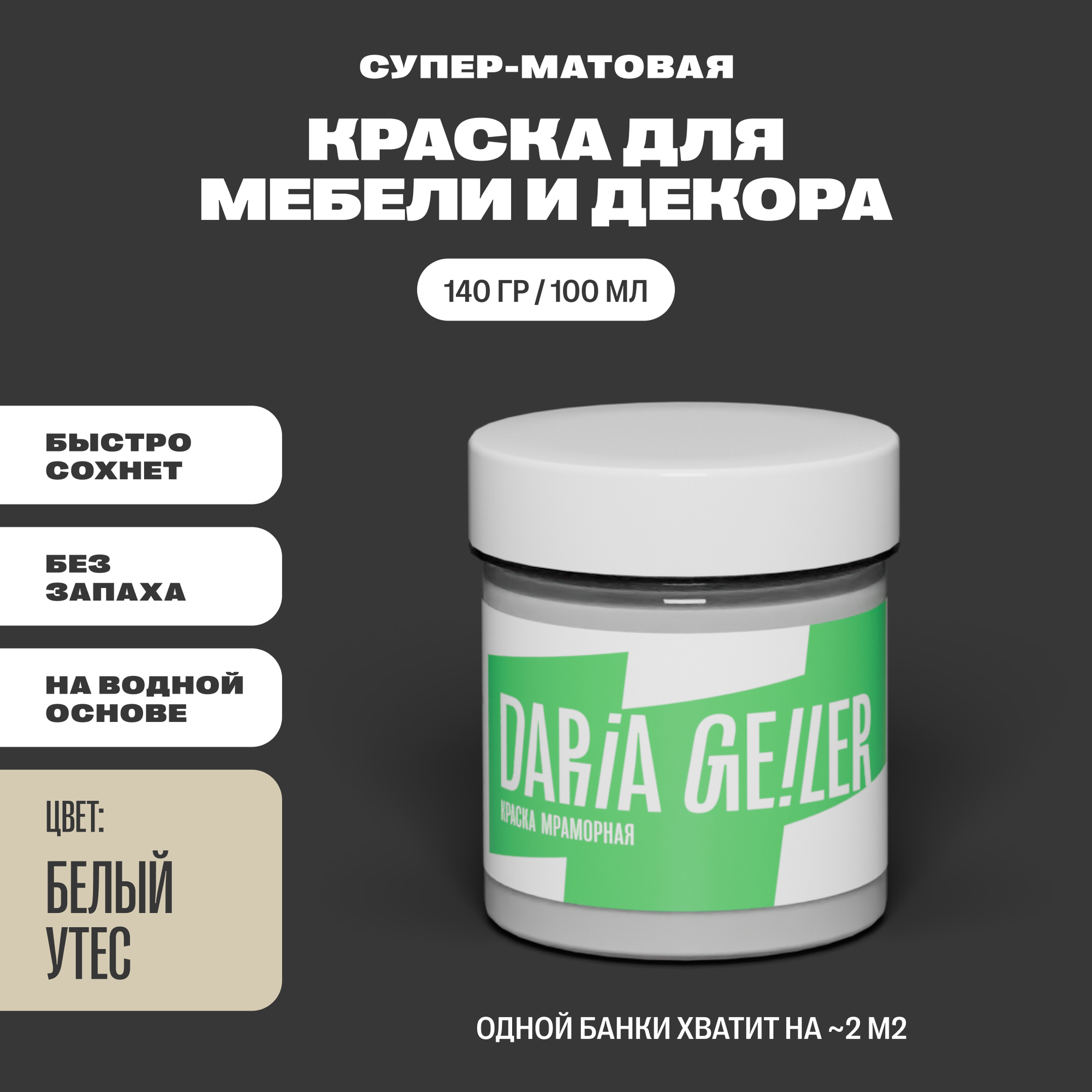 Мраморная краска для мебели Дарья Гейлер "Белый утёс" 100 мл, мебельная краска по дереву для стен Daria Geiler интересное: