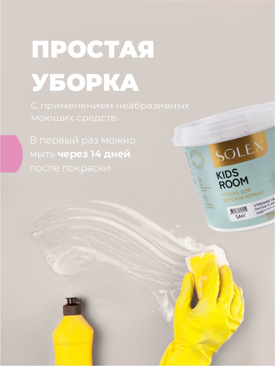 Краска для стен SOLEX, для детских комнат KIDS ROOM, ванильный зефир - 1,4 кг.