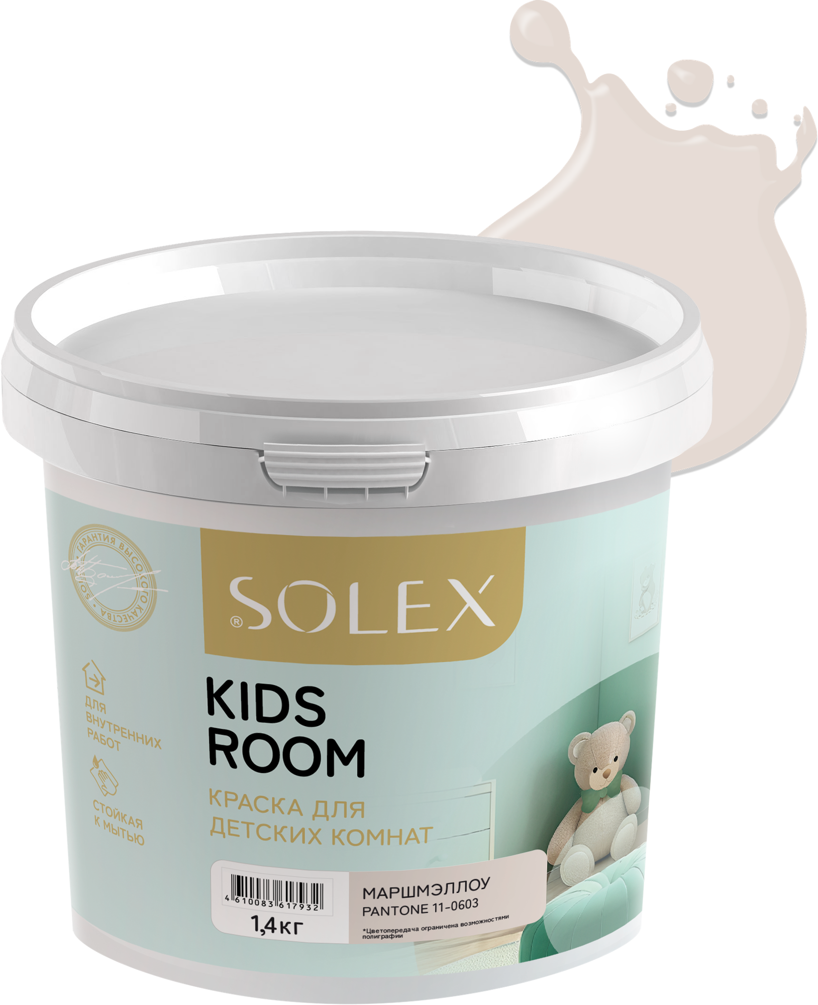 Купить Краска для стен SOLEX, для детских комнат KIDS ROOM, маршмэллоу - 1,4 кг.