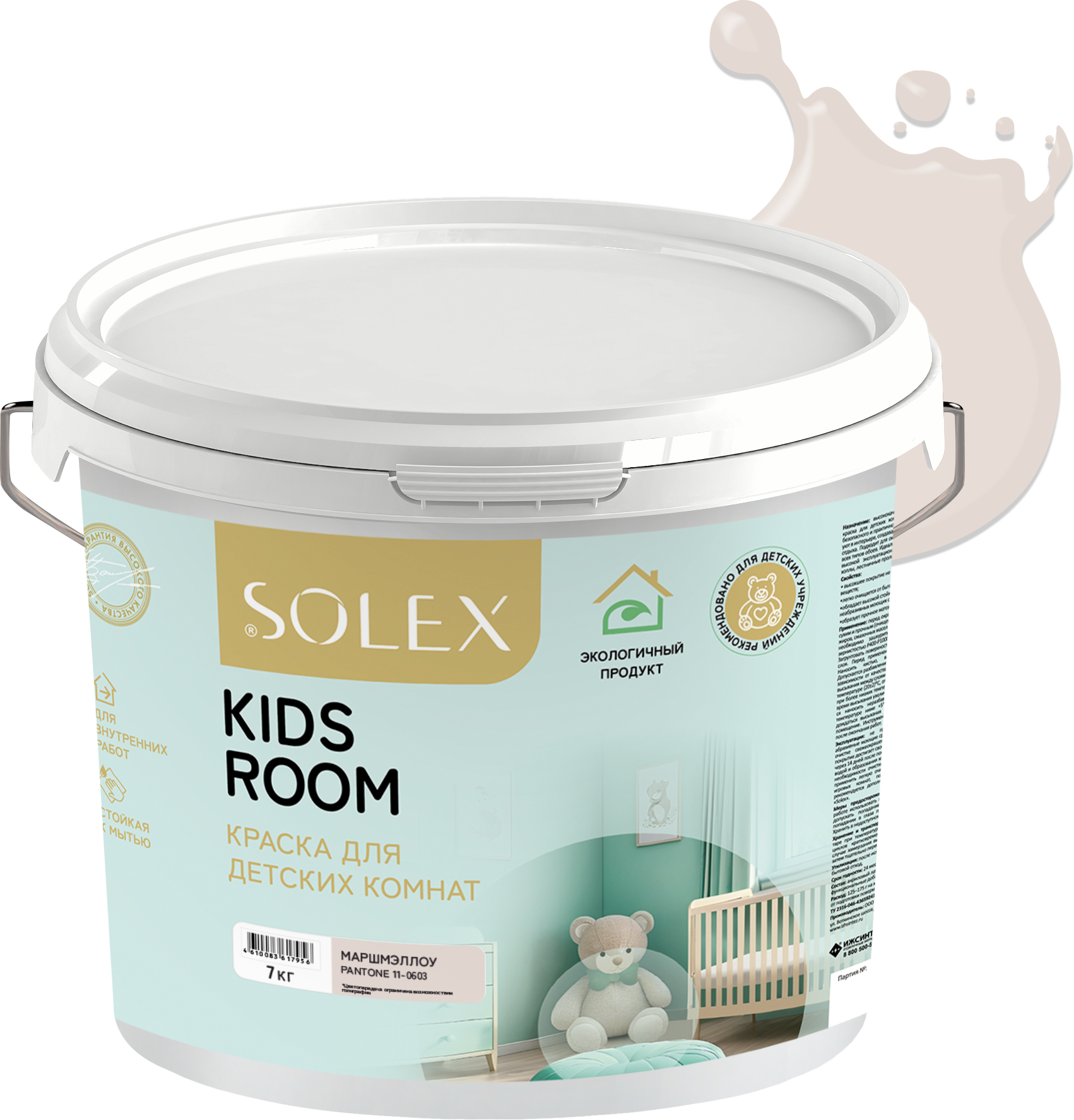 Купить Краска для стен SOLEX, для детских комнат KIDS ROOM, маршмэллоу - 7 кг.