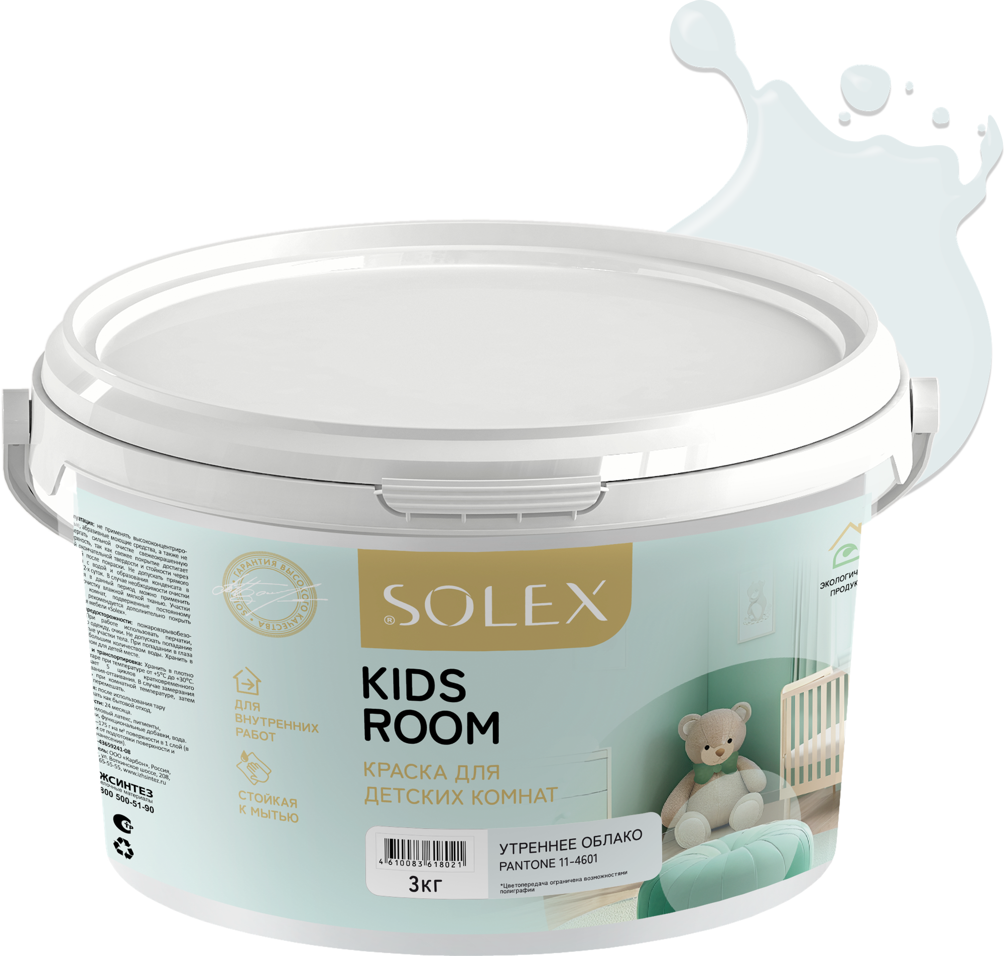 Краска для стен SOLEX, для детских комнат KIDS ROOM, мятный леденец - 3 кг.