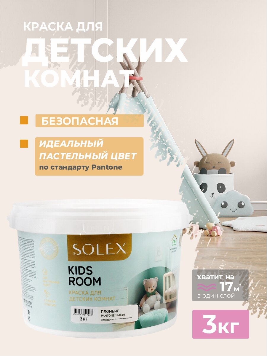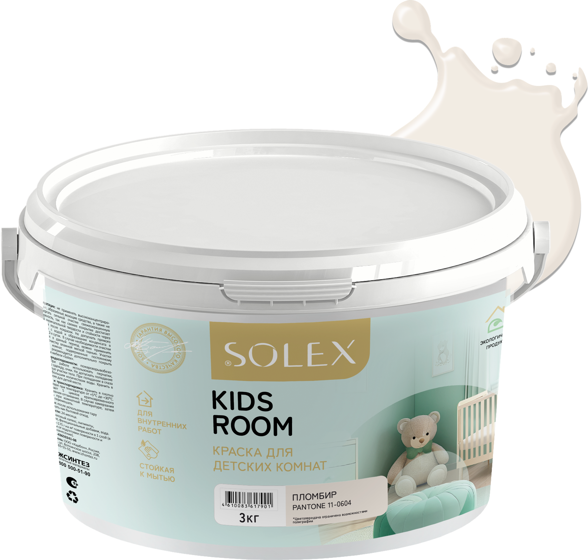 Купить Краска для стен SOLEX, для детских комнат KIDS ROOM, пломбир - 3 кг.