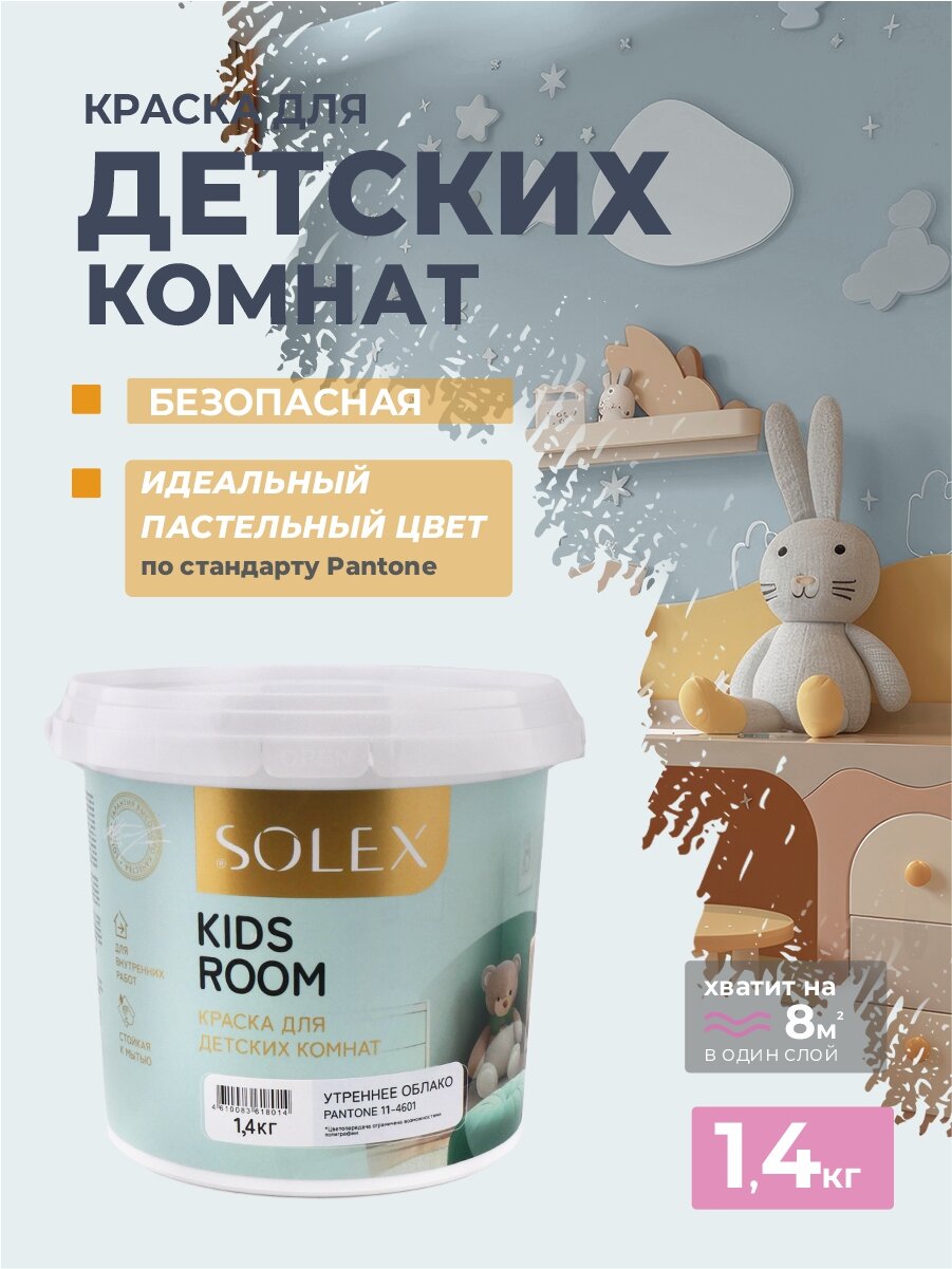 Купить Краска для стен SOLEX, для детских комнат KIDS ROOM, утреннее облако - 1,4 кг.