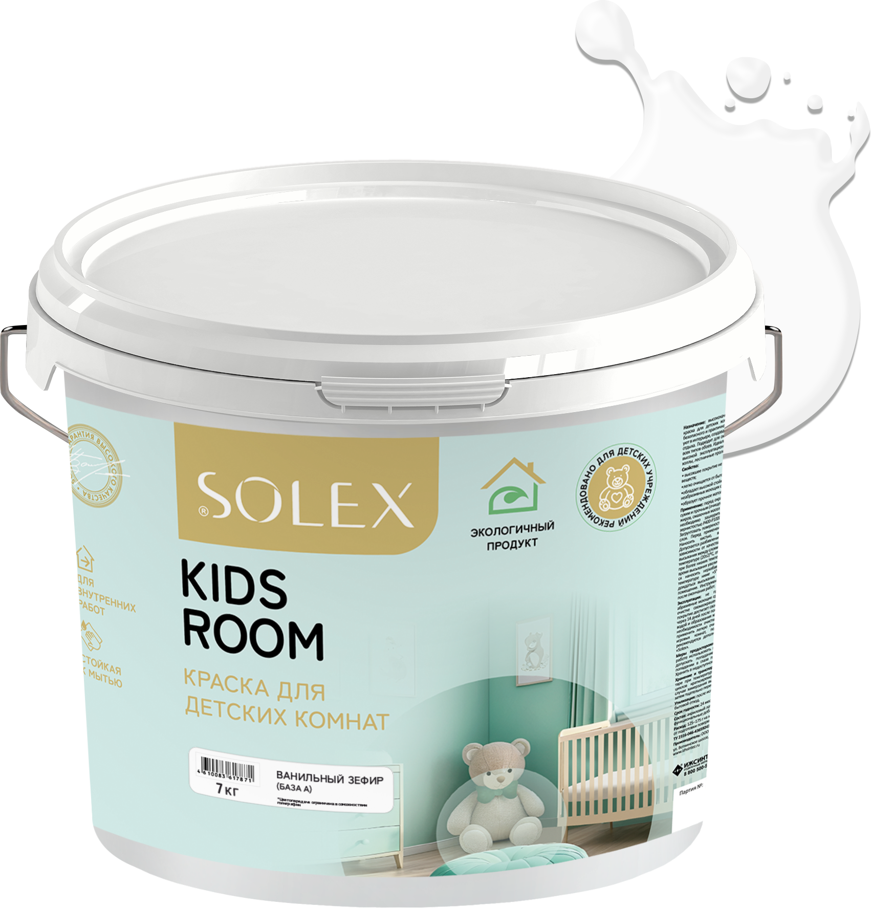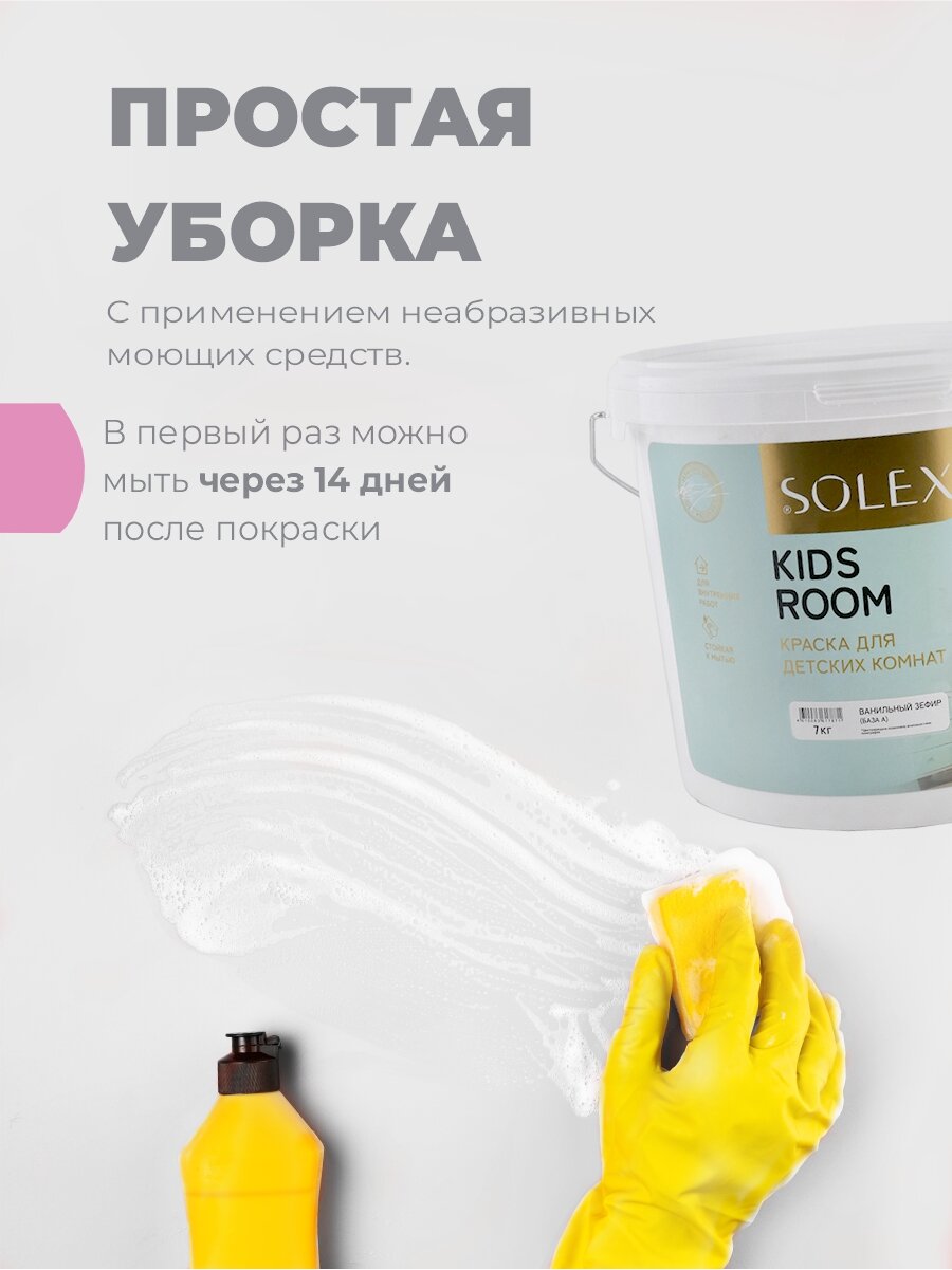 Краска для стен SOLEX, для детских комнат KIDS ROOM, пломбир - 7 кг.