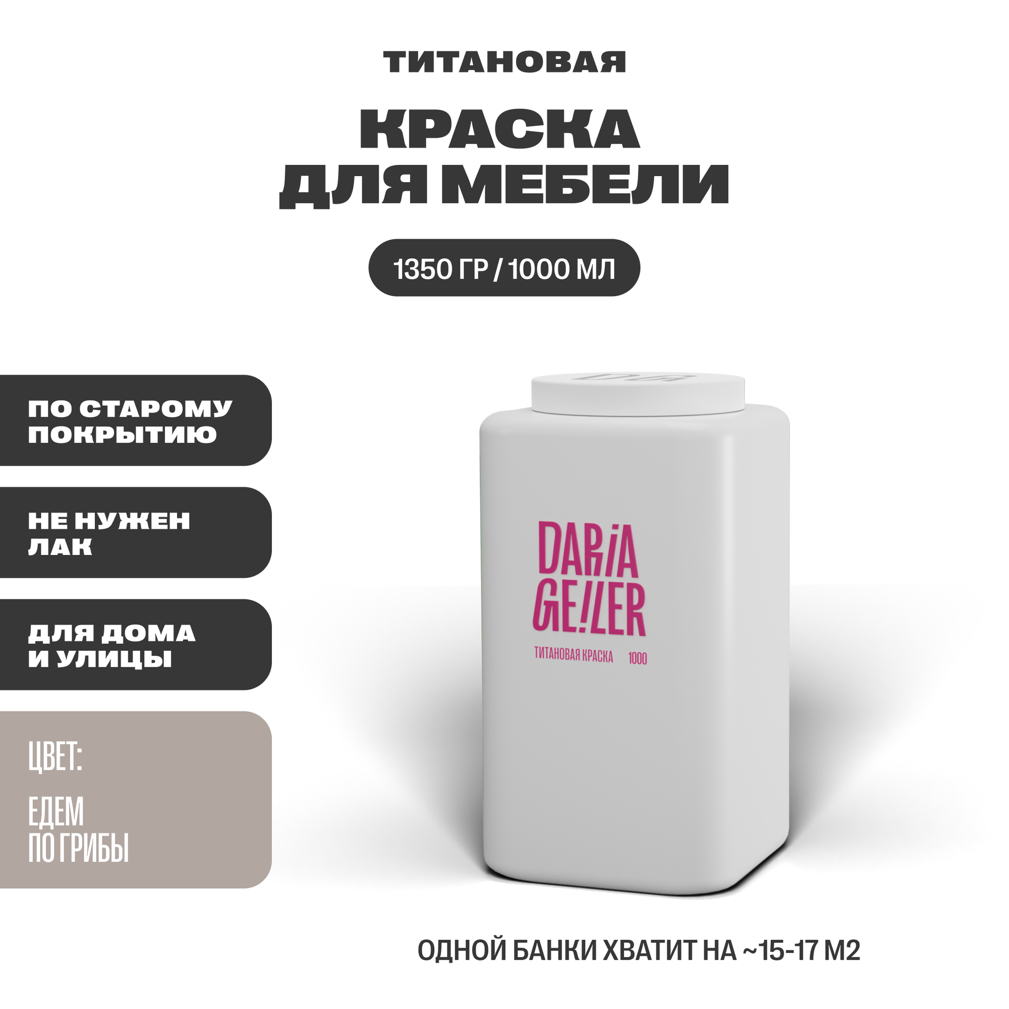 Купить DARIA GEILER краска для мебели титановая Дарья Гейлер "Едем по грибы" 1000 мл, водная, матовое покрытие, серо-бежевая