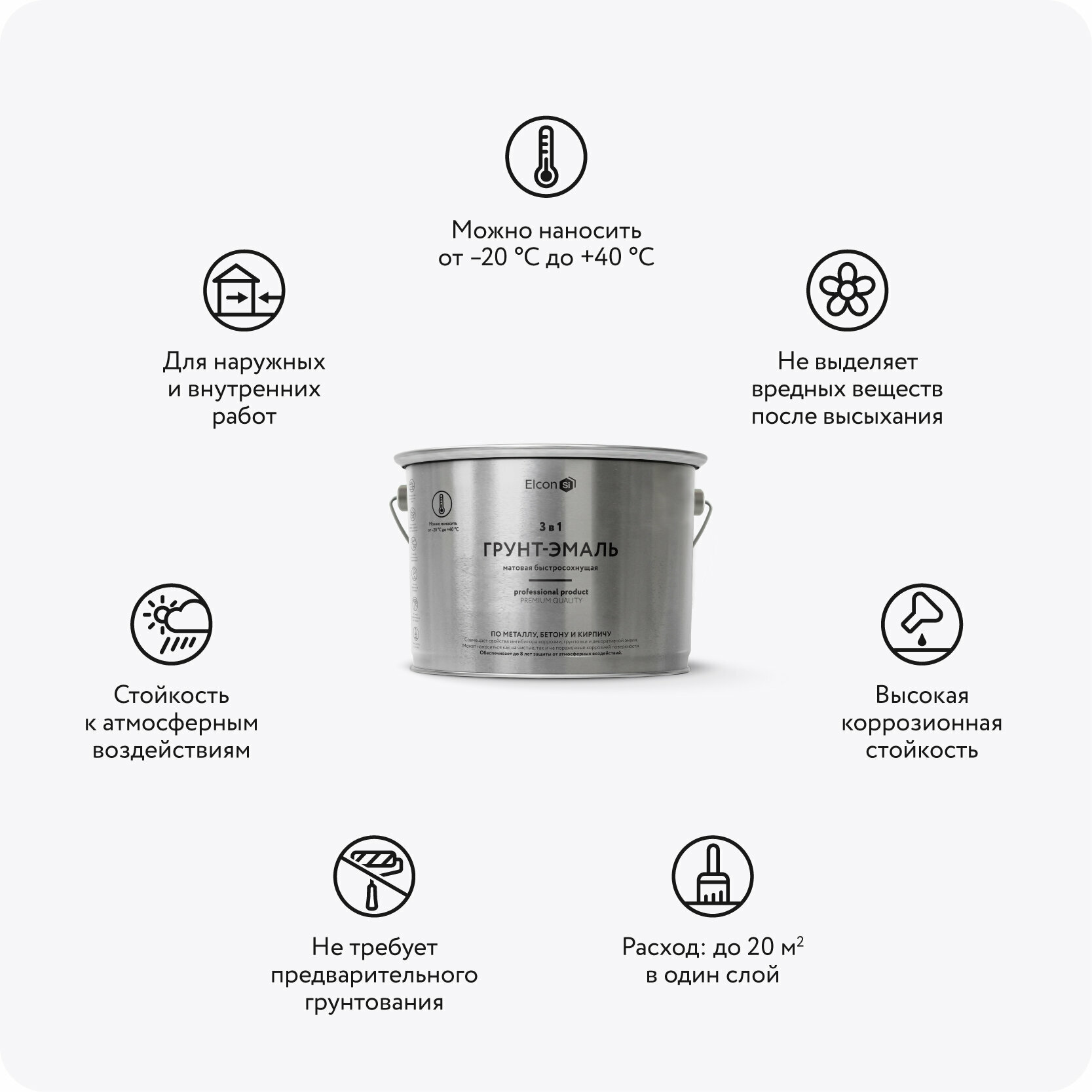 Грунт-эмаль по ржавчине Elcon 3 в 1 серая 0,8кг.