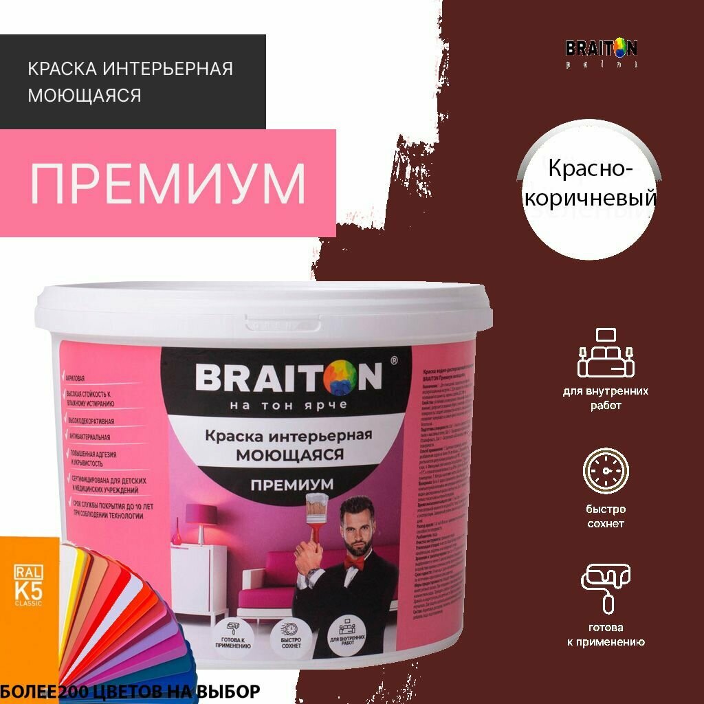 Краска ВД интерьерная BRAITON Премиум Моющаяся 2,5 кг. Цвет Глиняный коричневый RAL 8003