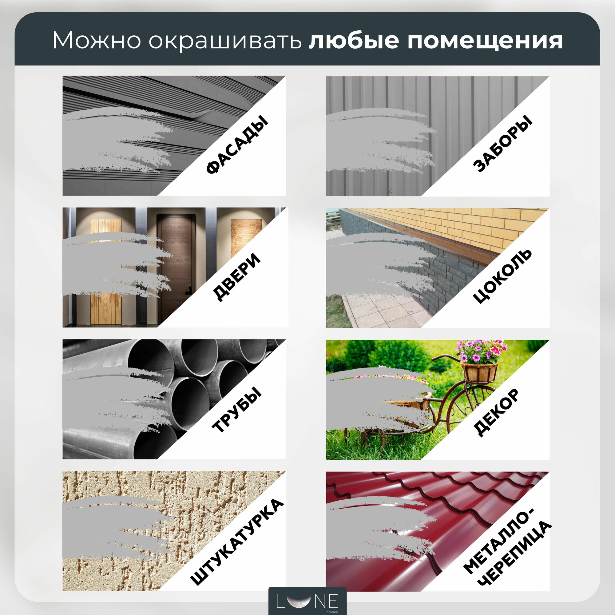 СохранитьРезиновая краска для дерева бетона кирпича по металлу матовая акриловая быстросохнущая без запаха LUNE COLOREE, цвет Серый (серая), 10 кг интересное: