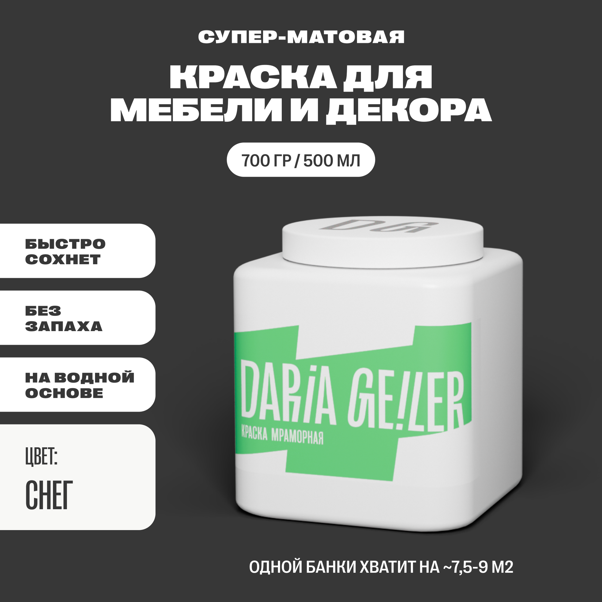 Мраморная краска для мебели Дарья Гейлер "Снег" 500 мл, подарочный комплект для художника Daria Geiler интересное: