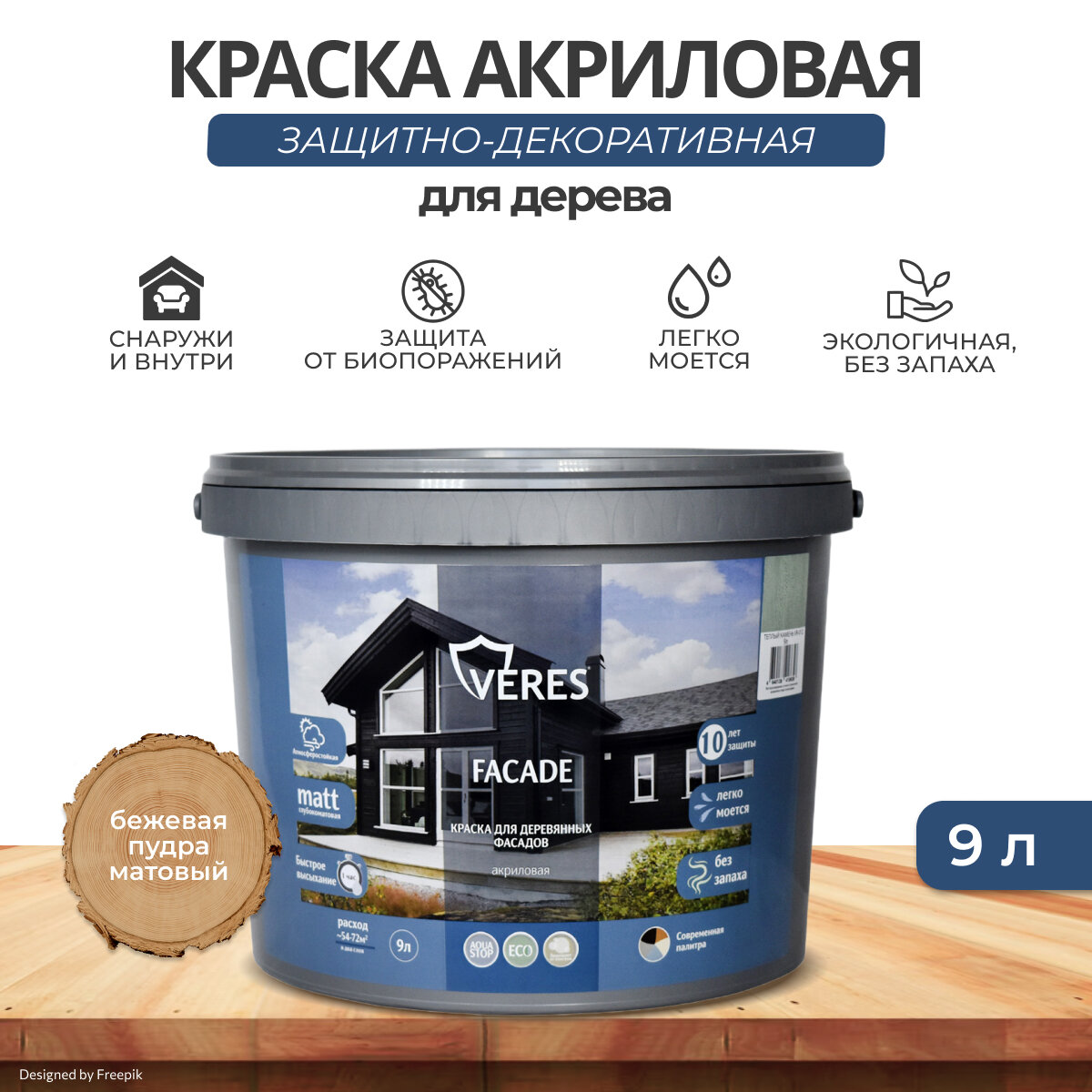 Краска для деревянных фасадов Veres Facade, акриловая, матовая, 9 л, бежевая пудра интересное: