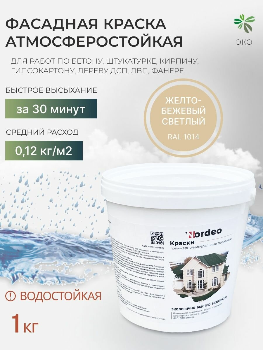 Краска фасадная Nordeo RAL 1001 1 кг, для стен, дерева, фасадная, без запаха
