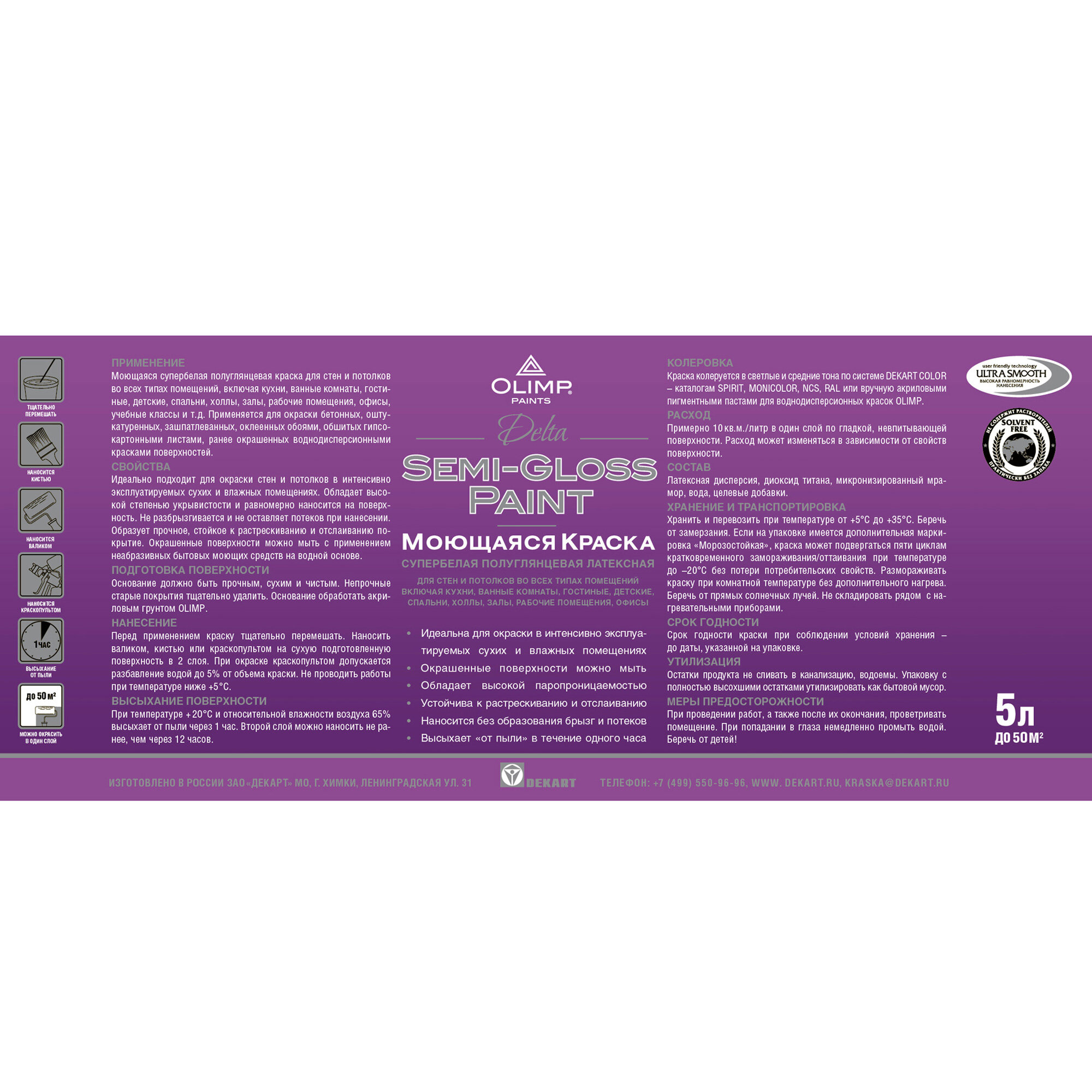 Купить Краска моющаяся для стен и потолков полуглянцевая супербелая OLIMP Delta 5 л